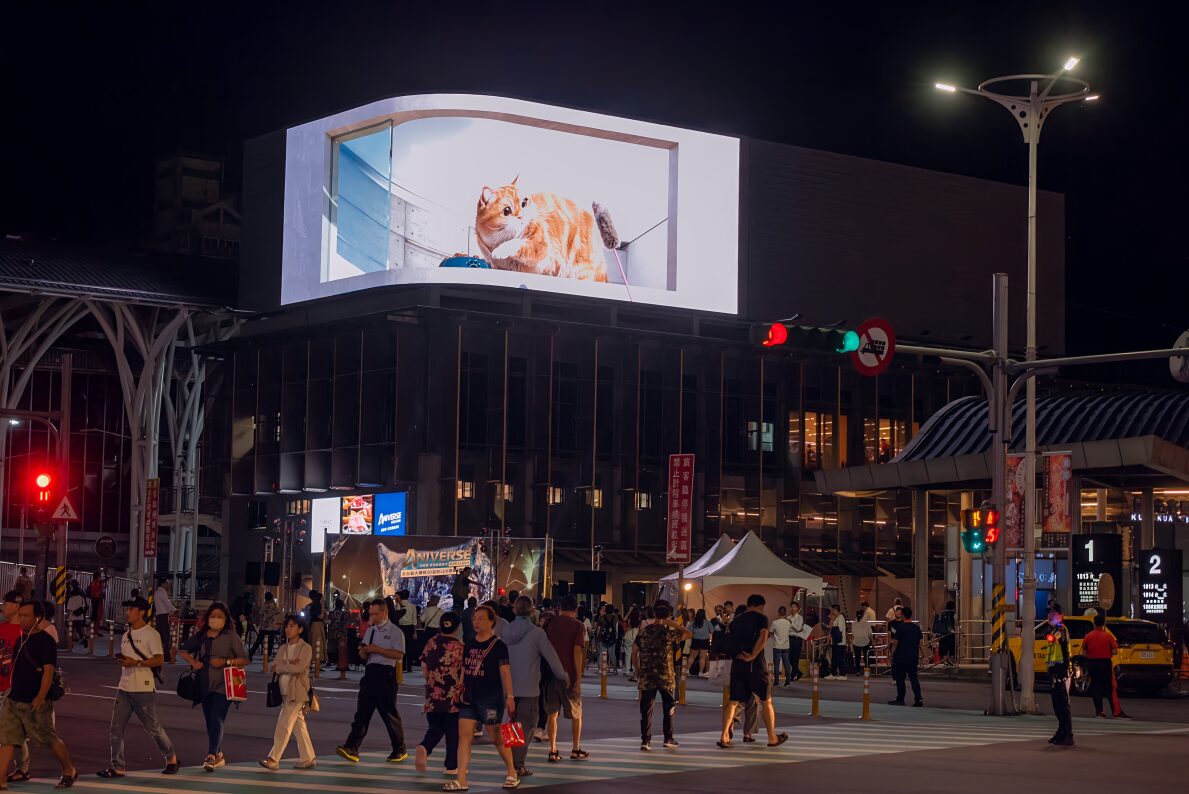 Featuring groundbreaking ALED seamless tiling technology, Brogent integrates AUO display technology to create the largest outdoor naked-eye 3D LED curved screen in Keelung. This innovation brings 3D animation to life on the exterior wall, transforming the former Keelung train station into a digitized attraction.