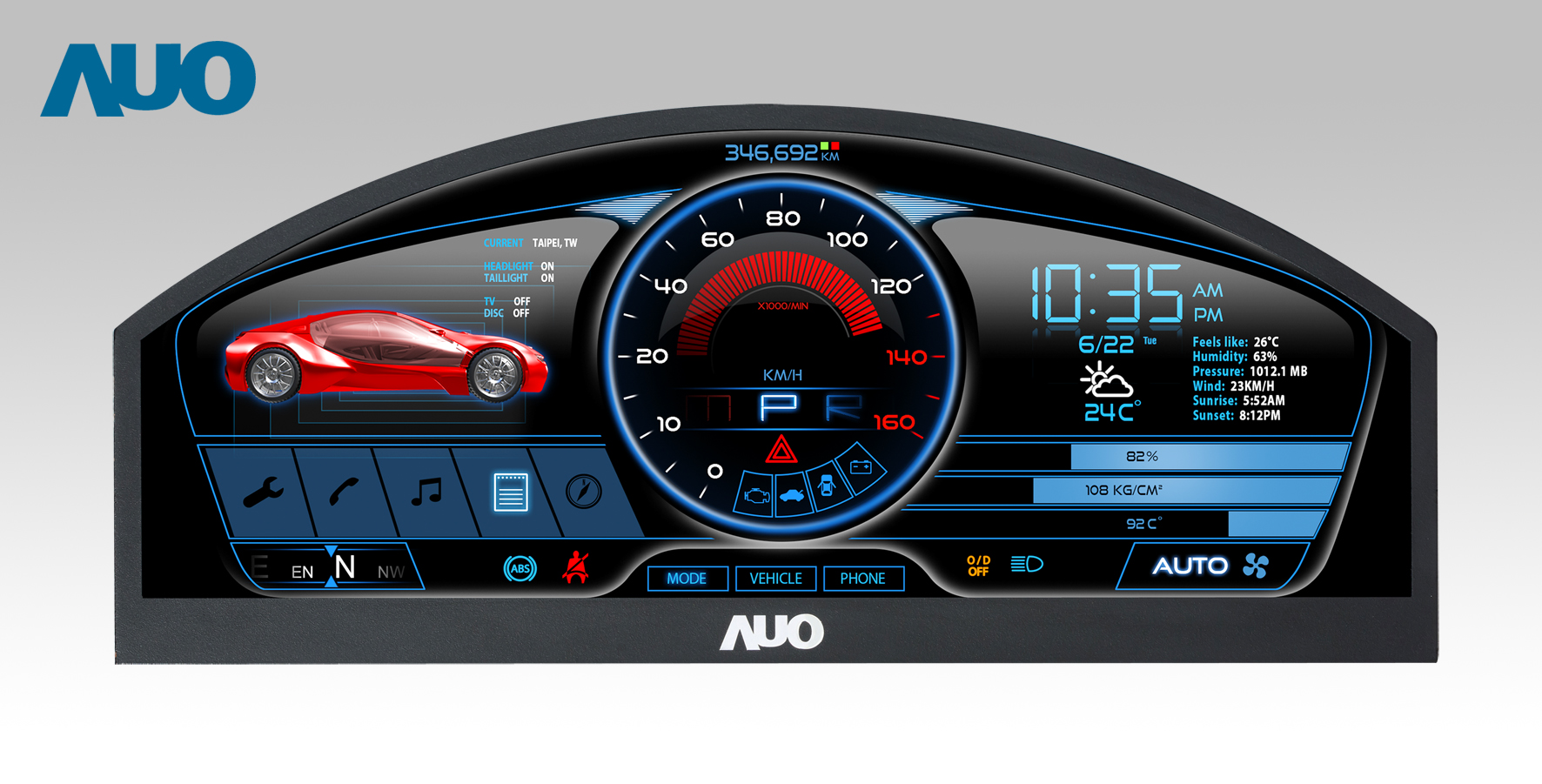 全系列 LTPS 車用面板 領(lǐng)軍智能車載顯示技術(shù)潮流 申博太陽城 LTPS 產(chǎn)品成功導(dǎo)入全系列車用面板,產(chǎn)品線廣布儀表板、中控臺、后照鏡與抬頭顯示器等應(yīng)用。12.3吋異型切割儀表板 LTPS 液晶屏,具備 AHVA 超視角高清晰技術(shù)、窄邊框、低耗能等特色,色彩飽和度高達 NTSC 100%,超窄邊框展現(xiàn)極致流線外觀。8.8吋全鏡面后照鏡 LTPS 液晶屏采全屏幕異型切割設(shè)計,超窄邊框僅 1.9 毫米,同時具備高亮度、低反射、快速反應(yīng)及省電優(yōu)勢,可依駕駛需求于高解析畫面及傳統(tǒng)鏡面模式之間切換,確保行車視野完整,大幅提升汽車行駛的安全性。