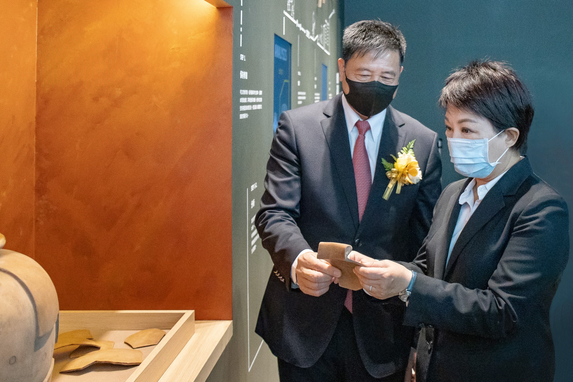 臺中市市長盧秀燕 (右)蒞臨友達(dá)西大墩窯文化館 ,友達(dá)光電董事長暨執(zhí)行長彭雙浪 (左) 陪同參觀