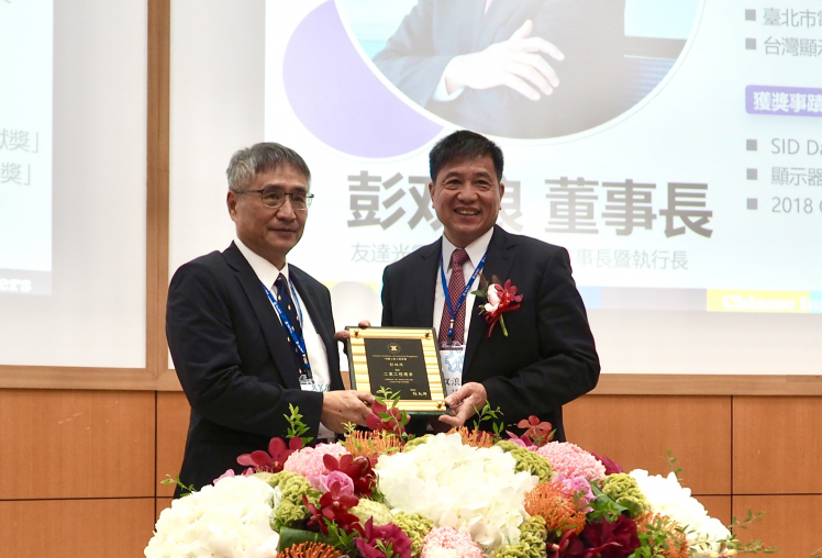 友達董事長彭雙浪獲頒「工業(yè)工程獎?wù)?產(chǎn)業(yè)貢獻獎」 ,由中國工業(yè)工程學會理事長楊能舒 (左) 頒獎 |